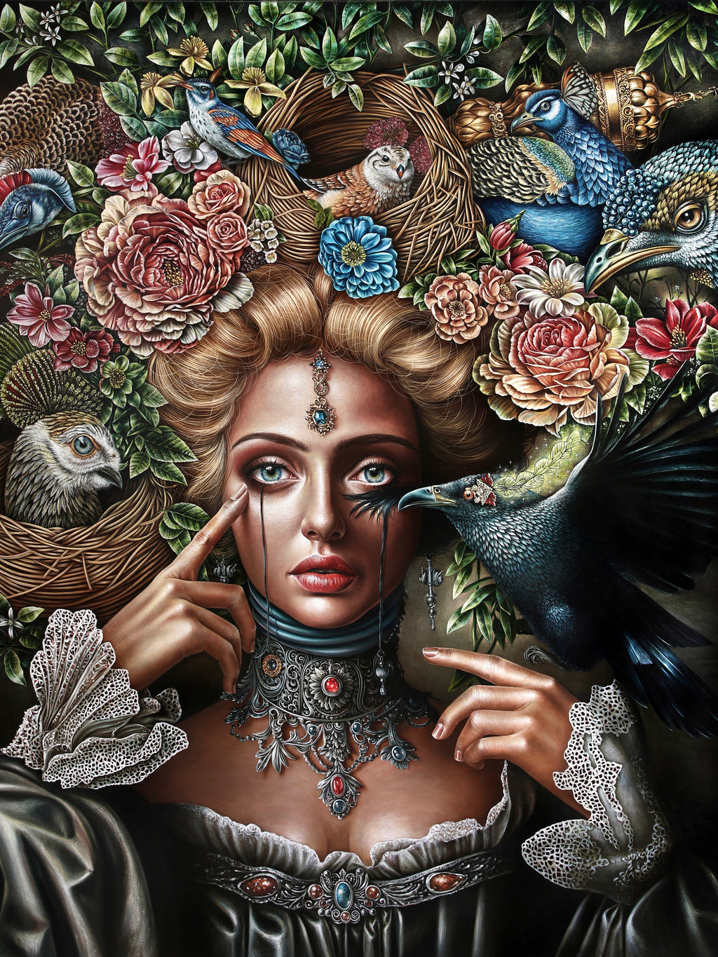 Throughout his collection, Toledo’s gorgeous printstransport you to an idyllic universe through the expression of dreamy characters. Toledo utilizes realistic imagery and skilled techniques while offering an imaginative approach to a simple scene, drawing the viewer in as they become captivated by the intricate details. From the realistic human portraits to the magical depiction of nature and the sky, everyone can find a piece that speaks to them within this collection. He provides an array of different color combinations to suit any preferences, accommodating for people who prefer bright colors and those that prefer more neutral tones. Whether you have an interest in royalty or simplicity, adding an original print to your room décor will change your whole perspective of viewing art.